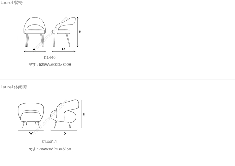 Laurel 餐椅 系列尺寸/示意图