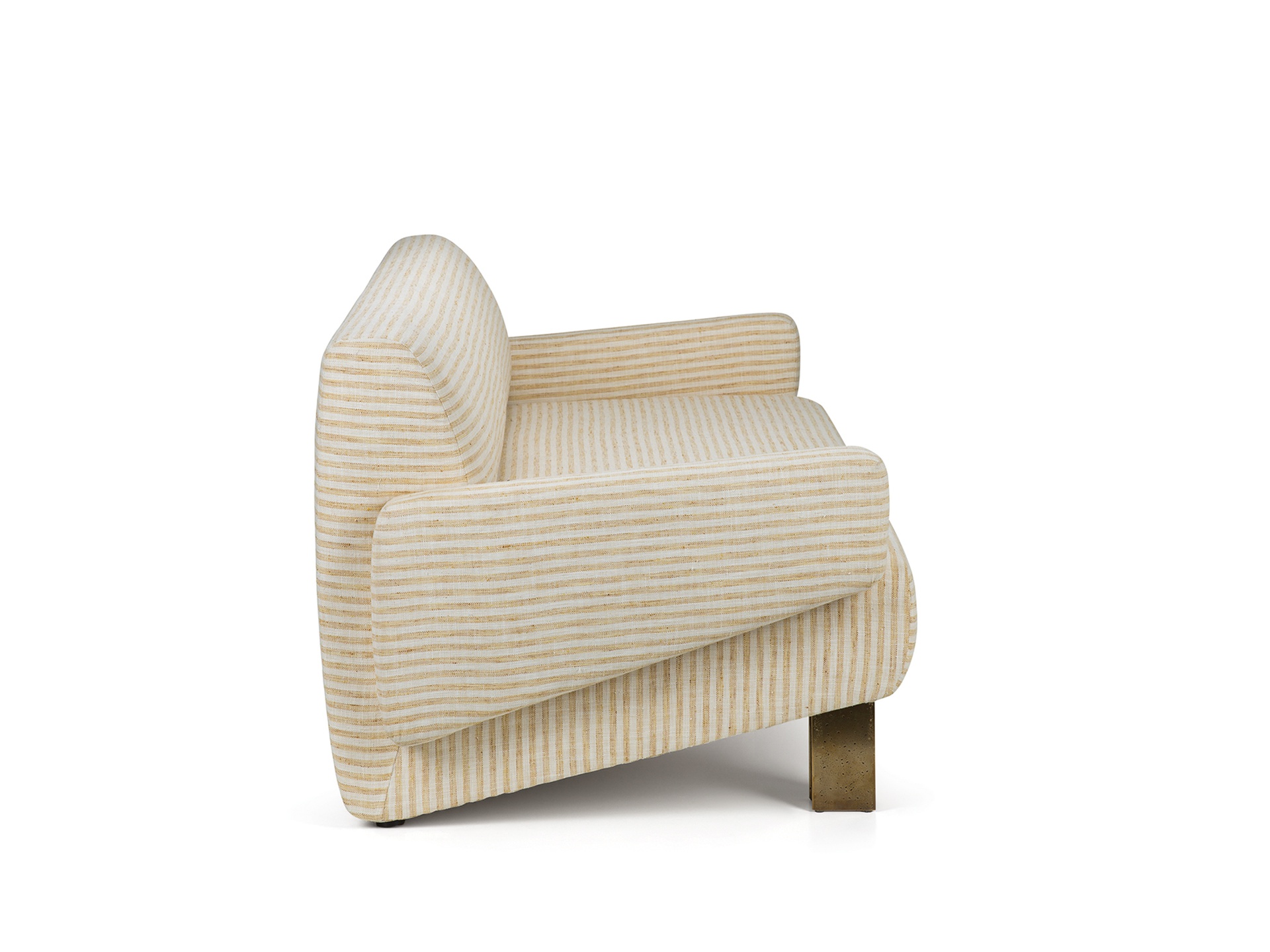 Zephyr Sofa拥有独特的现代和雕塑风格。 26英寸深的座椅深度,结合低腰背和锥形扶手,使这款球杆椅非常适合正式和休闲座椅。 铸造黄铜腿展现出手工锤击纹理,赋予建筑细节。 硬木框架采用双向榫钉,配有8向手动弹簧,可延长使用寿命和性能。