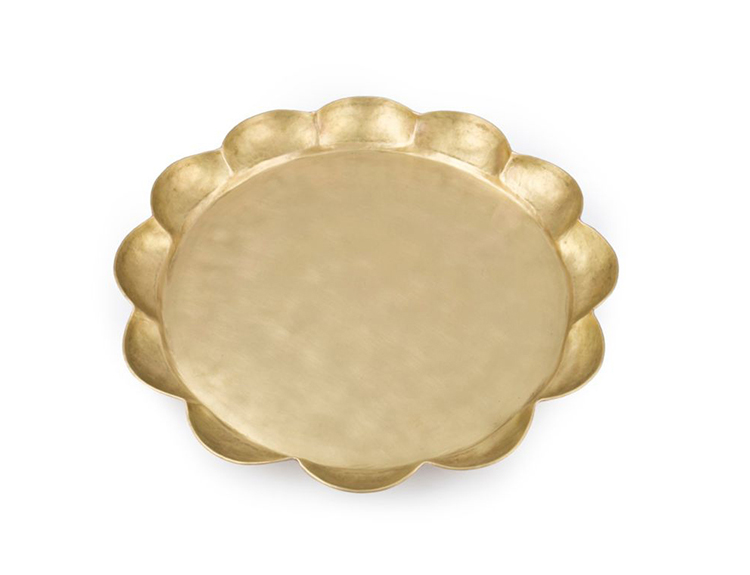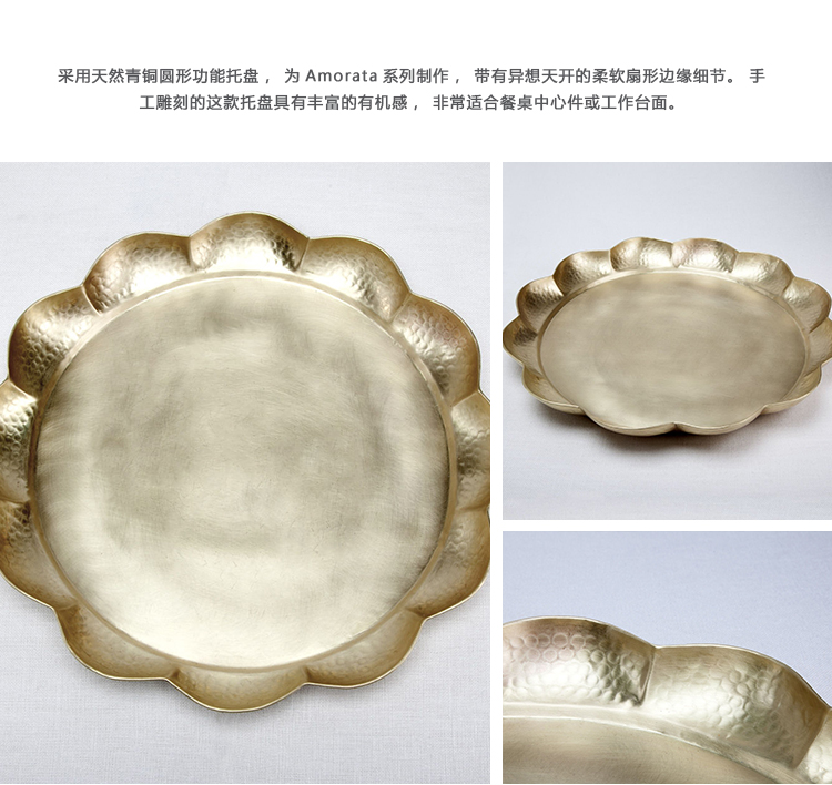 采用天然青铜圆形功能托盘,为Amorata系列制作,带有异想天开的柔软扇形边缘细节。 手工雕刻的这款托盘具有丰富的有机感,非常适合餐桌中心件或工作台面。