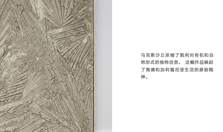 马克斯沙丘浓缩了凯利对有机和自然形式的独特欣赏。这幅作品唤起了海滩和加利福尼亚生活的原始精神。