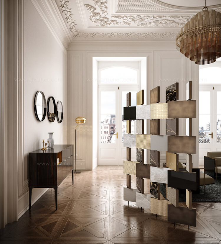 一系列镜子,玻璃增强了大理石和石头纹理。 轻盈和坚固,难以捉摸和存在,灯光和阴影:相反,吸引着基本和令人惊讶的形式。 悬挂在黑暗或明亮的墙壁上,一个接一个地,三个单元装饰明亮的房间设置。