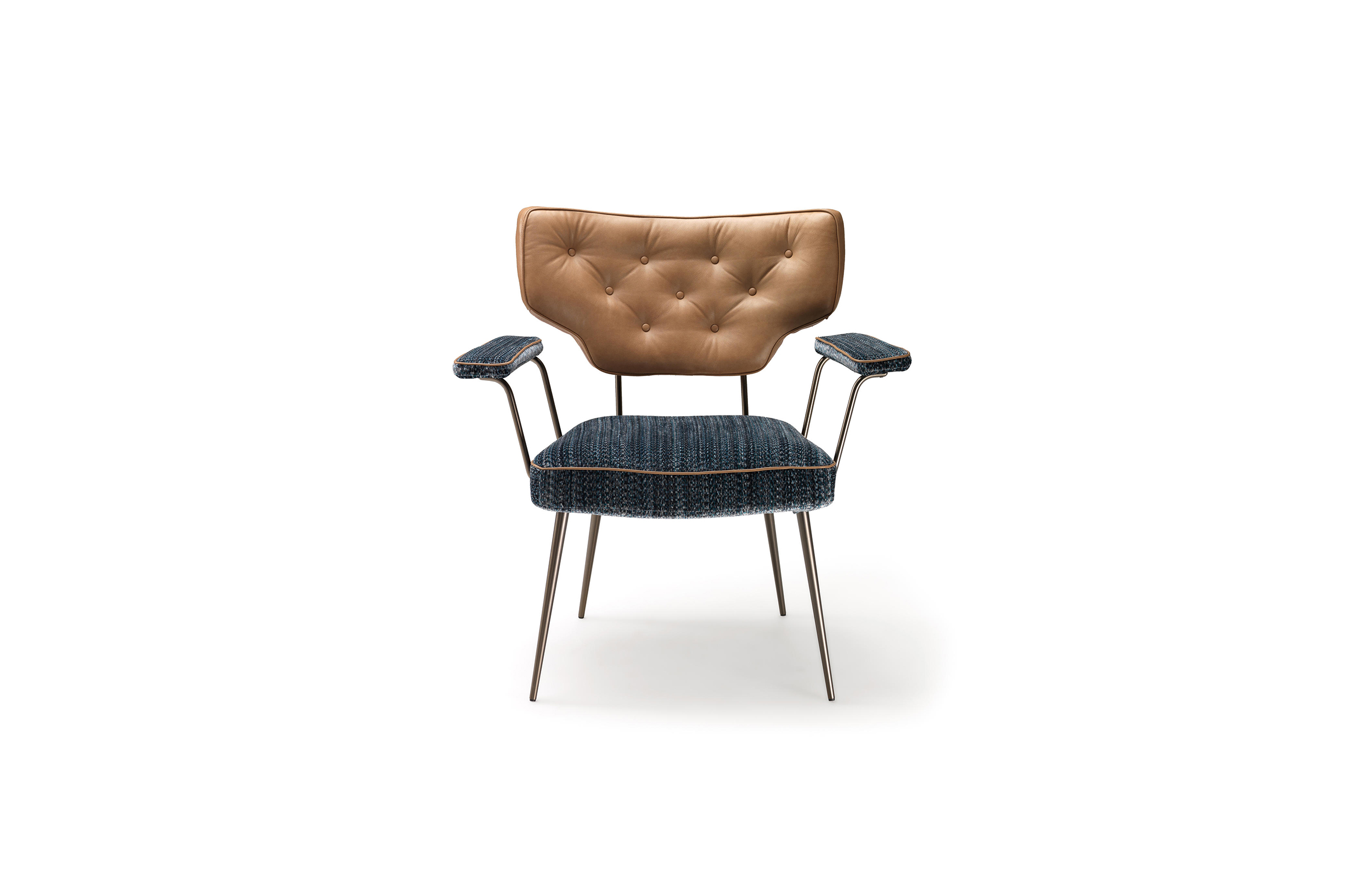 Twiggy是一款多功能的扶手椅,带有一种时尚的复古风格,灵感来源于一种个人时尚风格。在皮革或织物上的棉背,可以与座椅和手臂的装饰相匹配。滚边是一种高级的高级定制的细节,在周边,和背部的材料是相同的材料。这种腿有云母棕或钛金属。