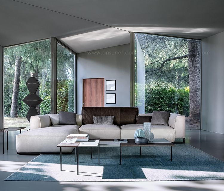 Inkas是一款独特的沙发,它可以创造出独一无二的、不可重复的风格,以及与座椅、扶手和背椅相连的各种形状。Inkas的设计有一个不规则的设计:阀座单元的边缘和后单元的边缘不匹配,而后单元的高度是可变的。它的效果是一种软性和几何形状的互锁模式,传达了一种节奏和活泼的感觉。所有的部件都在下面。支撑背部和扶手的底座可在云母棕色或白色中选择。