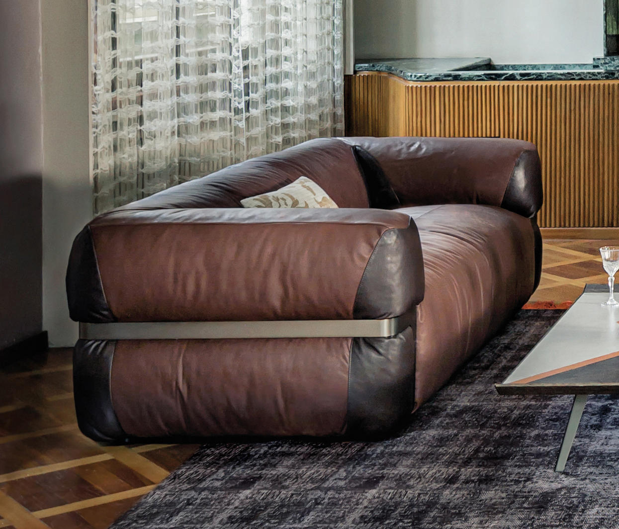 由Manzoni & Tapinassi设计的莲花沙发,可以让人对“组合沙发”的概念产生最大的影响,因为它可以根据自己的品味和所处的环境组合在一起。尽管它的背部很低,但它柔软而圆润的线条,以及它的衬垫,包裹着身体,给人极大的安慰。沙发的侧面,被云母棕色着色的镀锌的钛制金属框架阻断。角落里的补丁是一种装饰性的图案,因为它们可以根据自己的喜好个性化,选择面料或皮革。