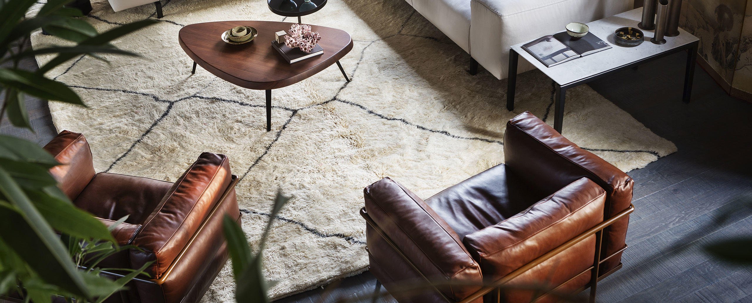 Fauteuil Grand Confort, 又称LC3。采用CR3三价镀铬钢材质或光泽玄武岩搭配灰色、亮蓝、绿色、枣红及赭色或哑光黑色珐琅钢架的双扶手椅和左/右单扶手椅及两人位/三人位沙发。柔软的衬垫采用聚氨酯海绵和喷胶棉或聚氨酯芯羽绒棉。皮革或布艺面料软包;镀铬框架结构可由布艺软包。同样有户外版本。