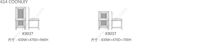 靠背椅,采用天然樱桃木、樱桃木色或黑色胡桃木制造。座垫采用聚氨酯海绵填充,皮革及布艺面料软包。