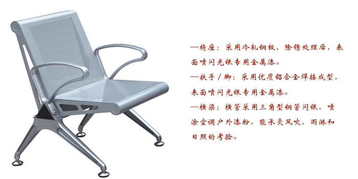 2、扶手/脚:采用优质铝合金焊接成型,表面喷闪光银专用金属漆。