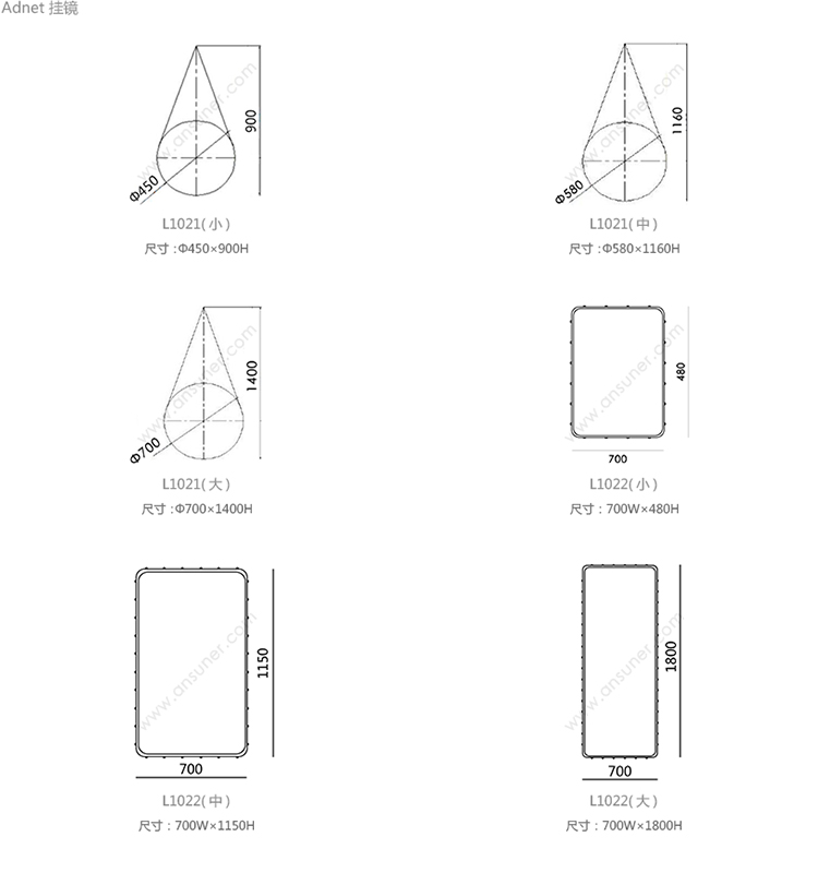 Adnet 挂镜 系列尺寸/示意图