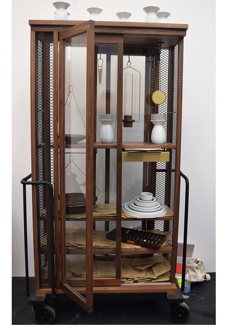 带玻璃门的木柜是从KIHARA陶瓷烧制金属手推车受启发设计,推车进入火炉,该炉代表着我们在生活中都会遇到的考验和磨难,从中我们贡献的汗水和泪水,痛苦和快乐。然而,正是通过燃烧这些罪恶和秘密,我们得以洗净。秘密揭晓或深藏起来,皆取决于我们自己。