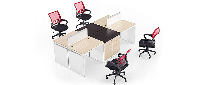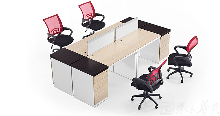※  六人位开放组合,多角度展示,以三胺板叠加作为侧脚板,或者以木质文件柜作为台脚,明亮开放的工作站设计,多种形状的排布组合。