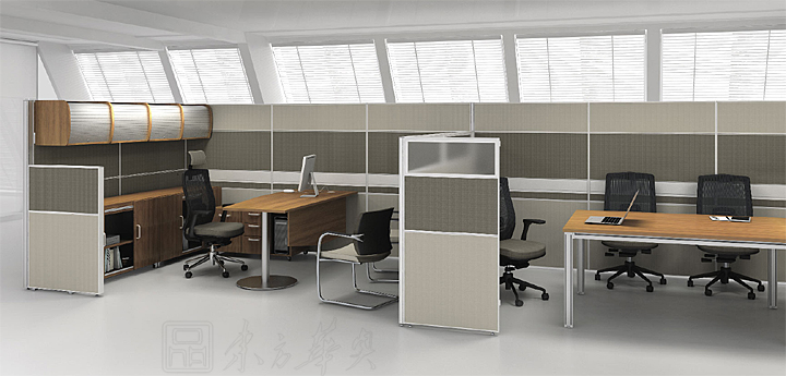 工作站中加装较高的桌上屏风,来创造工作团队中也有属于自己的区域。用高屏风来区隔本工作团队和别人。