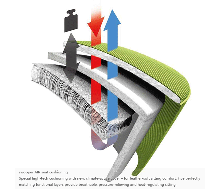 Swopper Stool(跳跳凳)是设计师Henner Jahns别具心裁的设计。椅子物料选用高质量,易于清洁的座椅罩面料:超细纤维面料赋予座椅更多色彩。螺旋弹簧是由精钢制造,使swopper移动时能提升,供稳固而有弹性,独一无二的坐感,您可以根据你的体重分别设置弹簧硬度,脚座采用压铸铝,可选配固定脚或轮子。Swopper Stool(跳跳凳)能让你体验到 “坐”着运动 德国swopper座椅自1997年推出市场以来,以其创新的3d技术,全胜实现使用者向各个方向的运动,彻底颠覆了办公椅市场。其独特的三维运动能让你在办公的同时乐在其中。此座椅在国际设计舞台上屡获殊荣。Swopper Stool(跳跳凳)是以让你坐不踏实为目的而设计的健康办公椅,坐在上面你就需要靠脊椎和背肌保持平衡,如此可达到锻炼脊椎软骨和背肌的作用,并保持大脑的兴奋度。