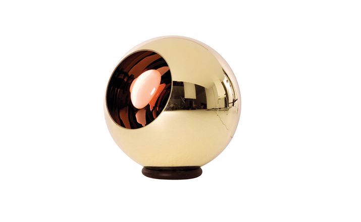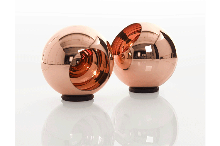 A polycarbonate sphere, which is vacuum metallised with copper inside and brass outside to give a double colour effect. Available as a floor or pendant light