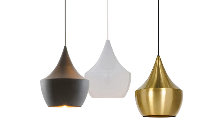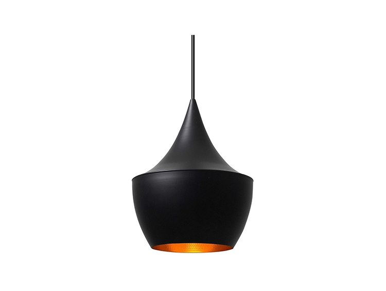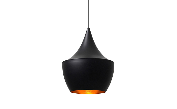 "Designer Tom Dixon was inspired by the shapes of Indian water carrying vessels when he designed his group of four different pendant lights. Hang just one, grab a pair, or hang the entire group of four in a composition of your own creation. The hand beaten brass ages naturally, creating a patina black external surface in contrast to the warm golden interior. available in 4 different shapes and sizes. "