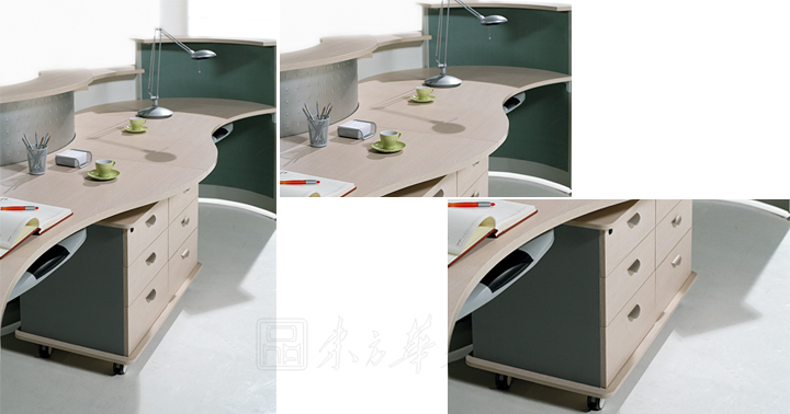2. 基 材:E1级达欧洲环保标准基材(目前国内办公家具行业板式基材标准较高的),此基材用原木压缩颗粒成型,甲醛含量小于1.4MG/L,抗弯性能强,不易变形。