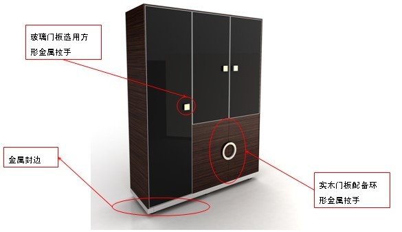 产品风格:简约的直线条,由金属薄封边与厚封边构成错落有致的整体造型,增强视觉的层次,金属拉手的搭配,突破对创新的最求。