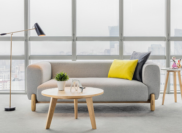 块辅以简单的构造形态的独特结构的腿,这是实木做的。 这种关系让沙发上强烈的个性,同时使其保持谨慎的家具。