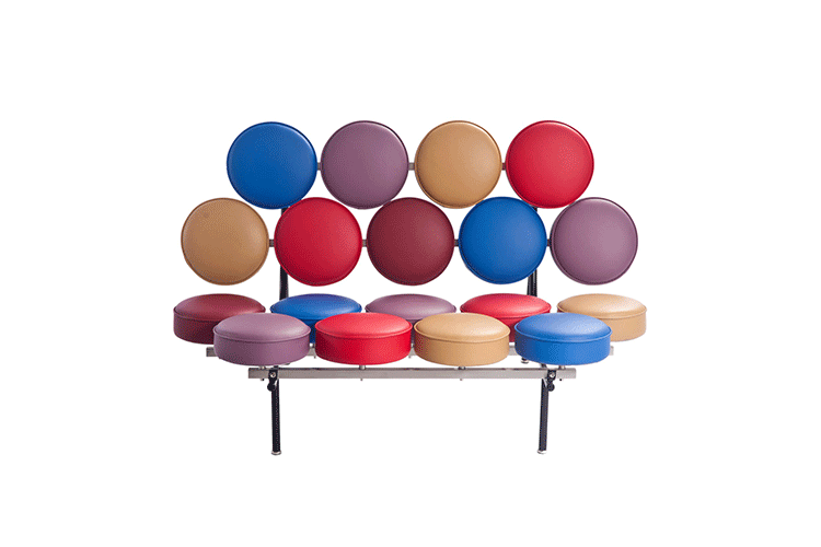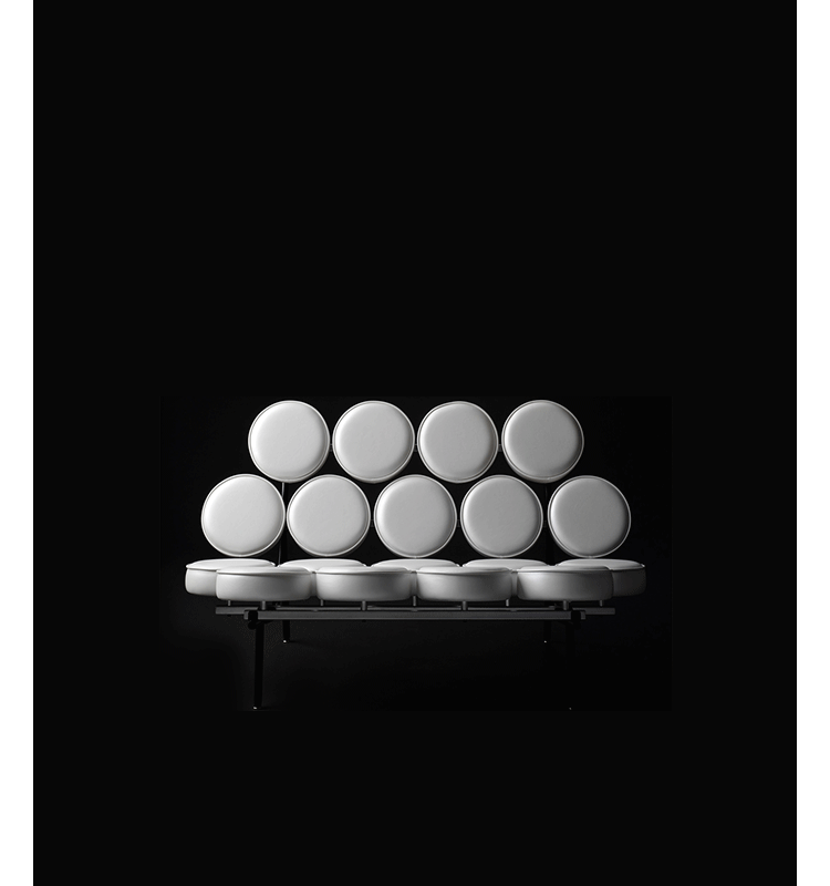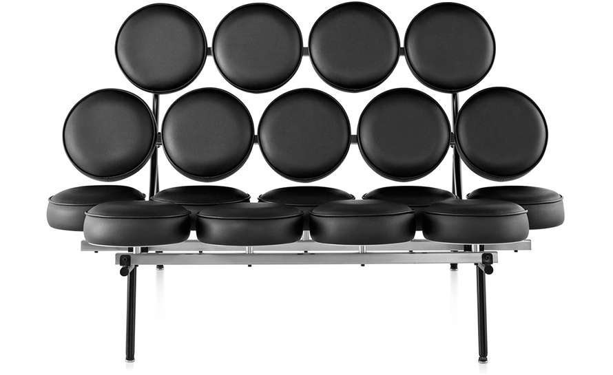 棉花糖沙发,英文名“Marshmallow sofa”,也叫鼓椅、向日葵椅,是设计师George Nelson在1956年设计的,这个设计用18个独立的圆形软垫组成座椅和靠背,“漂浮”在沙发框上。软垫的拆卸十分方便,可轻松完成保洁工作,并可交换各个软垫的位置以保持均匀的使用度,还可选择软垫的颜色,组合出全新的外观,因此很富于游戏感。米勒公司在推出这款产品的时候,说这个沙发是“第一款孕育着全新软椅概念的产品。我们觉得它不仅可以在家里使用,而且可以在与前者环境迥异的公共大厅内使用,它与众不同的外观无疑是公共场合的一道风景线。”软垫的色彩有单一色彩和多种色彩可选,适用范围很广,办公室、大厅、休闲室、客厅或书房等空间都可使用。