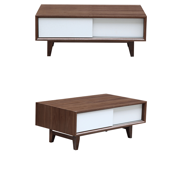 porter modern retro media coffee table(波特现代复古媒体咖啡桌)是Kardiel公司制作的经典实木家具,具有世纪中期的现代风格,咖啡桌下面左右滑动的抽屉可以兼具书柜及存储功能。制作采用精选MDF板基材胡桃木或水曲柳木皮贴面、胡桃实木或水曲柳实木脚架、环保油漆喷涂、做工精湛。