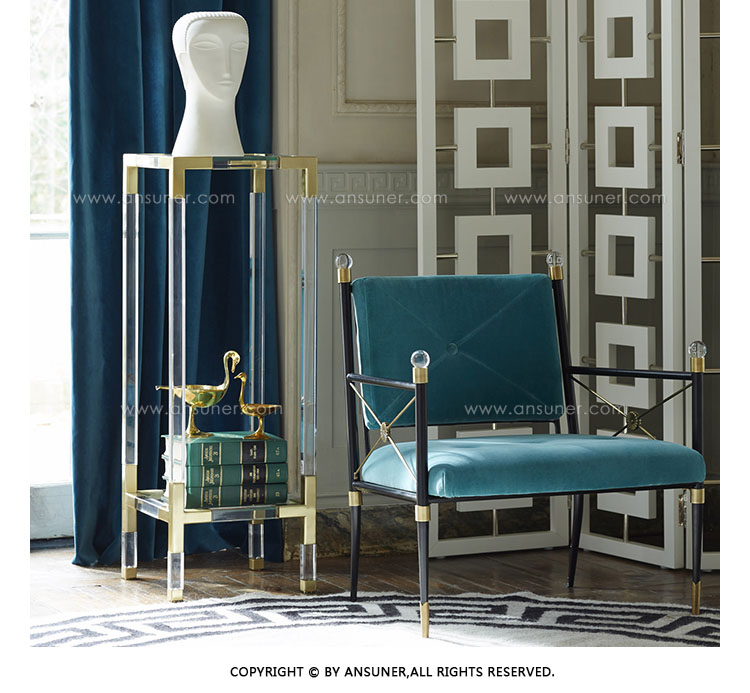 从luxe透明丙烯酸与拉丝黄铜或抛光镍口音,或穆迪烟丙烯酸与抛光镍装饰。为书籍或展示你最喜欢的作品而举行的聚会。