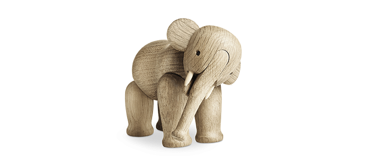 Kay Bojesen Elephant(Kay Bojesen 大象)设计于1953年,出自丹麦设计大师 Kay Bojesen 的设计作品,精致的木制动物系列,是 Kay Bojesen 为人熟知的珍藏作品系列,采用不同的橡木、枫木、柚木等原木素材,保留木材的独特纹理,刻画出各种不同让人莞尔一笑的动物姿态,跳脱生活中的烦琐与紧张,简单的玩偶,轻松的神情,带您回归孩时的天真与简单快乐。精致而限量珍藏的作品系列,适合您作为桌面摆设,或是作为送礼小物,分享您生活中的快乐写意。