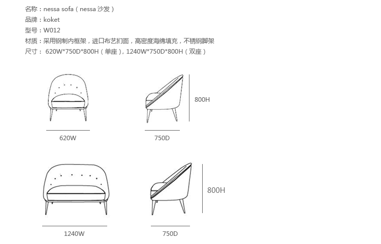 单座 620 w | 750 d | 800 h