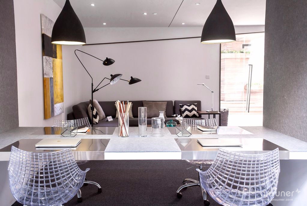 一个属于年轻人创业的工作环境应该具有时尚的气氛,以黑白灰的主色调,充足的阳光,极简洁的风格和活泼的氛围。