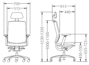 700W*615D*1230-1330H